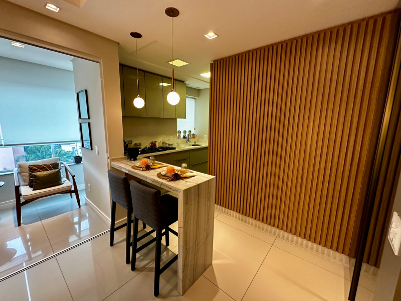 Este imóvel conta com sala com sacada integrada - com churrasqueira, cozinha, área de serviço, 2 suítes, lavabo, e dormitório. vaga de garagem para 2 veículos de passeio.
