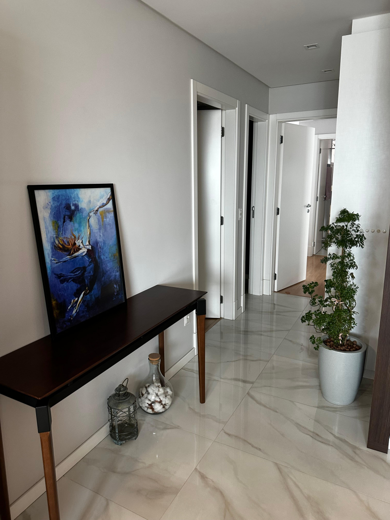Está mobiliado, e equipado com eletrodomésticos, chuveiros, aquecedores, e demais itens - apenas serão retirados do apto cama de casal, berço, cervejeira, itens de uso pessoal e de decoração, bem como TVs.